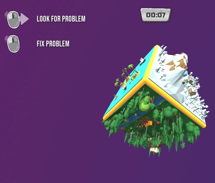 Vous avez trouvé un petit monde fragile et diversifié. Vous êtes maintenait un maître d'un cube et chaque côté est un environnement différent, comme une forêt, une montagne, une ville etc. Mais ceci est une grande responsabilité ! Dans ce monde, ils arrivent de grandes catastrophes comme des incendies de forêt ou de petits ennuis comme une récolte perdu d'un fermier... C'est à vous de les résoudre et de garder le cube en vie !